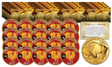 These CHINESE NEW YEAR 2017 – YEAR OF THE ROOSTER COINS are lucky money and a treasured collectible. Here is your chance to own or gift a beautifully colorized famous YEAR OF THE ROOSTER 24KT Gold Plated 2017 American Buffalo Indian Tribute Coin. This high-quality coin has been layered in Genuine 24 Karat Gold, and then enhanced with beautiful colorized images using a unique painstaking multicolor authentic process. Colorizing coins involves the unique application of special inks directly to the surface of a coin that achieves a level of detail, color saturation, and durability that is #1 in the coin industry. The result is an everlasting colorized coin collectible of ultra-high quality. Each coin comes in a premium coin capsule with a Certificate of Authenticity. LOT OF 20!