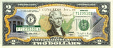 This INDIANA State uncirculated Two-Dollar Bill is Genuine Legal Tender of the United States, which has been enhanced with beautiful iconic images of the State. The colorized images are accomplished through a revolutionary new authentic & genuine colorization process pioneered by The Merrick Mint, creating a collectible work of art. Additionally, The Merrick Mint has applied three unique security features to the bill using a special C-Thru technology including: bell in the inkwell, the feather quill, and vertical ribbon. Included is a blue display portfolio plus a Certificate of Authenticity to guaranty that your bill is authentic and recognized by every monetary authority around the world, and assuring its Collector Edition status. Only genuine Legal Tender $2 United States Bills are used for this unique colorization process. Each $2 Bill is in FRESH, CRISP, UNCIRCULATED condition, and was directly removed from untouched wrapped Federal Reserve sealed packs. Former U.S. President Thomas Jefferson is featured on the obverse of the note, along with the special colorization overlay. The Signing of the Declaration of Independence by John Trumbull is featured on the reverse. It is the only U.S. Currency note that features two Presidents, John Adams and Thomas Jefferson, and it is one of the most rarely seen BILLS in circulation and actual use.