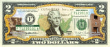 This NEW MEXICO State uncirculated Two-Dollar Bill is Genuine Legal Tender of the United States, which has been enhanced with beautiful iconic images of the State. The colorized images are accomplished through a revolutionary new authentic & genuine colorization process pioneered by The Merrick Mint, creating a collectible work of art. Additionally, The Merrick Mint has applied three unique security features to the bill using a special C-Thru technology including: bell in the inkwell, the feather quill, and vertical ribbon. Included is a blue display portfolio plus a Certificate of Authenticity to guaranty that your bill is authentic and recognized by every monetary authority around the world, and assuring its Collector Edition status. Only genuine Legal Tender $2 United States Bills are used for this unique colorization process. Each $2 Bill is in FRESH, CRISP, UNCIRCULATED condition, and was directly removed from untouched wrapped Federal Reserve sealed packs. Former U.S. President Thomas Jefferson is featured on the obverse of the note, along with the special colorization overlay. The Signing of the Declaration of Independence by John Trumbull is featured on the reverse. It is the only U.S. Currency note that features two Presidents, John Adams and Thomas Jefferson, and it is one of the most rarely seen BILLS in circulation and actual use.