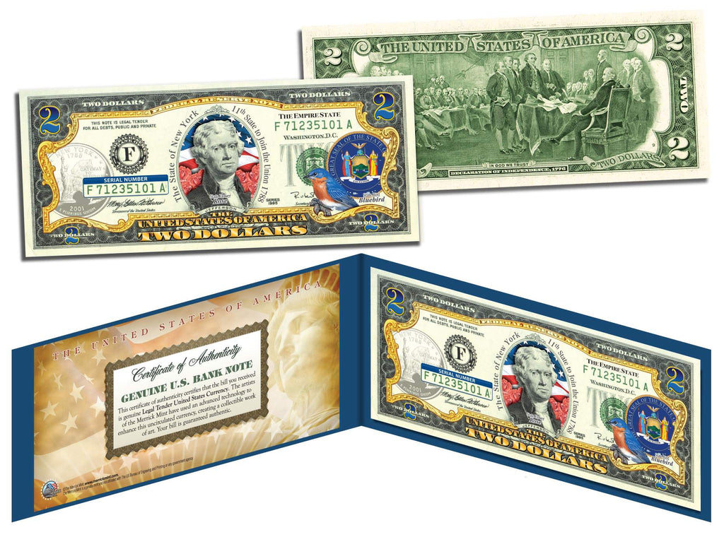 • NEW YORK $2 Statehood NY State Two-Dollar U.S. Bill - Genuine Legal Tender
