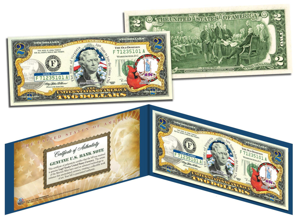 • VIRGINIA $2 Statehood VA State Two-Dollar U.S. Bill - Genuine Legal Tender