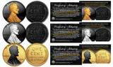 1943 Genuine Steel Wartime Wheat Penny U.S. Coin Set of 3 Rare Metal Versions (Black Ruthenium, Silver, 24K Gold) Here is your chance to own a Set of 3 spectacular 1943 Genuine U.S. Steel Wartime Wheat Pennies. You will get all three Rare Metal Versions of this famous 1943 Genuine Steel Wartime Wheat Penny. You will receive all 3 versions...VERSION #1 Black Ruthenium with 24K Gold Highlights, VERSION #2 Black Ruthenium with .999 Fine Silver Highlights, and VERSION #3 24K Gold with Black Ruthenium Highlights.