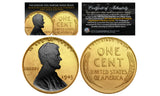 Here is your chance to own the 1943 Genuine 24KT GOLD plating Steel Wartime Wheat Penny U.S. Coin with BLACK RUTHENIUM Highlights. The 1943 steel cents are U.S. one-cent coins that were struck in steel due to wartime shortages of copper. The unique composition of the coin (steel coated with zinc, instead of the usual bronze composition) has led to various nicknames, such as wartime cent, steel war penny, and steelie. The 1943 steel cent features the same Victor David Brenner design for the Lincoln cent which had been in use since 1909. The steel cent is the only regular-issue United States coin that can be picked up with a magnet. The steel cent was also the only coin issued by the United States for circulation that does not contain any copper and it one of the most collectible and favorite coins of collectors throughout the world. Here is your chance to own a genuine legal tender 1943 GOLD US Steel Wartime Penny with BLACK RUTHENIUM Clad Abraham Lincoln on the Obverse. The coin is Highlighted with Black Ruthenium, which is a type of platinum metal that looks like a dark platinum, but is 100 times Rarer. Ruthenium is a chemical element with the symbol RU & Atomic # 44. It is a rare transition metal belonging to the platinum group of the periodic table.