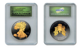 • Walking Liberty on the coin obverse clad in 24KT Gold.