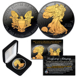 • Walking Liberty on the coin obverse clad in 24KT Gold.