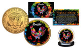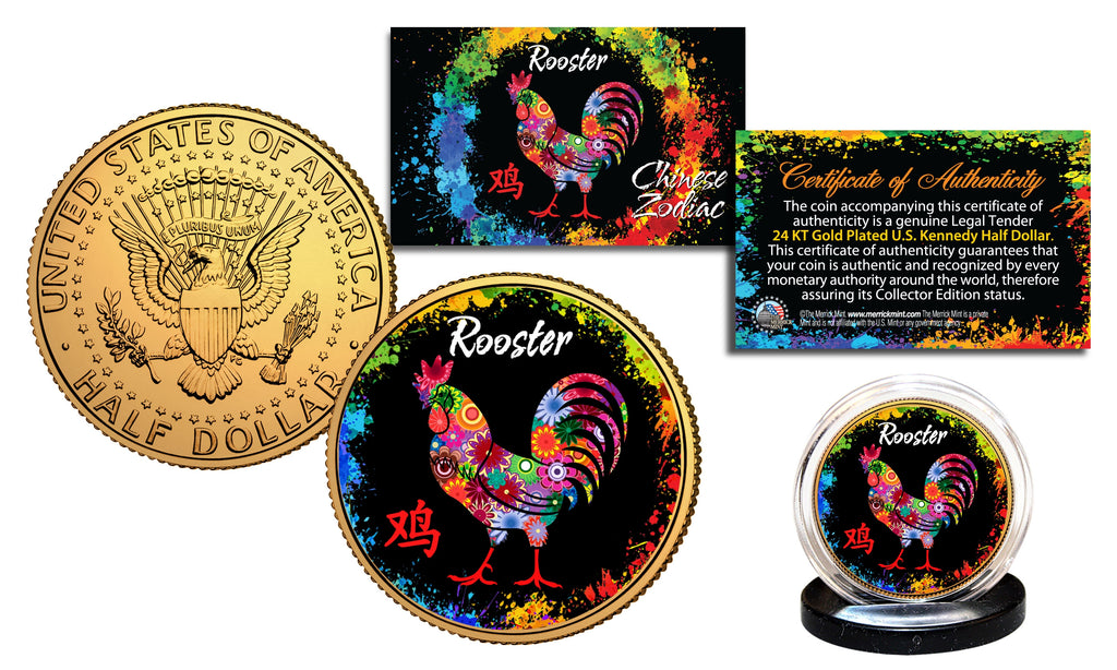 Chinese Zodiac PolyChrome Genuine Legal Tender JFK Kennedy Half Dollar 24K Gold Plated U.S. Coin - ROOSTER
