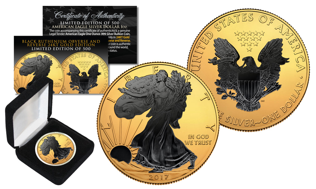 • Walking Liberty on the coin obverse clad in Black Ruthenium.