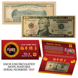 This features an uncirculated $10 Federal Reserve note with serial numbers containing the numbers “888.”