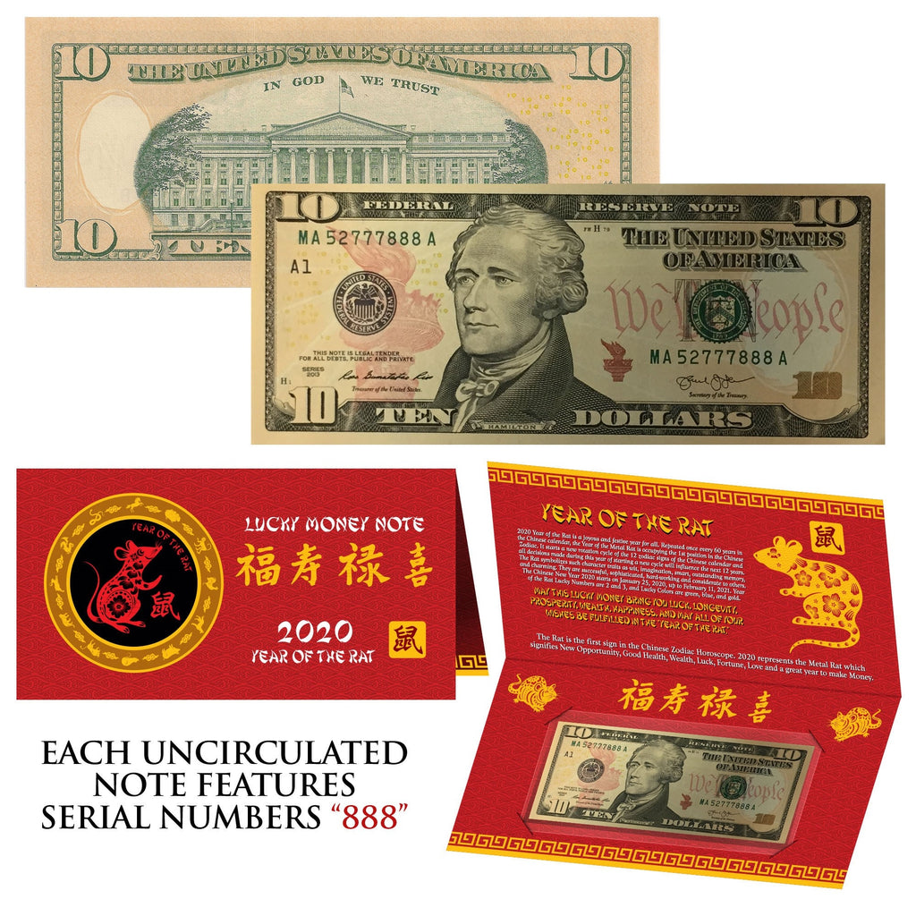 In celebration of the 2020 Year of the Rat Chinese Lunar New Year, we have announced the newest addition to its Lucky Money Collection…2020 Year of the Rat Lucky 8’s Serial Number Banknotes. The Year of the Rat 2020 product is designed with Decorative Chinese Symbolism and packaged in a Symbolic Red Folder adorned in Full-Color. Each folder contains an uncirculated Genuine Legal Tender United States Banknote.