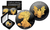 • Black RUTHENIUM 1 Oz .999 Fine Silver 2017 American Eagle U.S. Coin with 2-Sided 24K Gold clad with Deluxe Felt Display Box