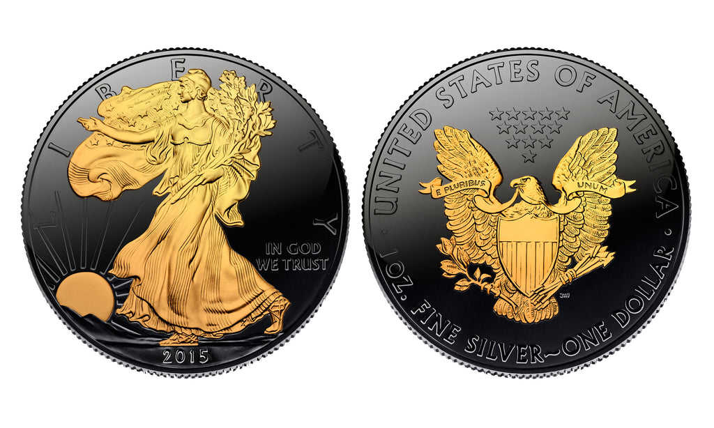 • Walking Liberty on the coin obverse clad in 24KT Gold.
