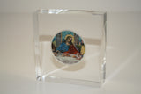 The beautiful Jesus Christ colorized 2001 American Silver Eagle coin is permanently set in an acrylic Lucite paperweight, making it a magnificent religious display piece for your home or office. The Jesus Christ colorized 2001 U.S. Silver Eagle Dollar is genuine legal tender struck by the U.S. Mint. It is minted in one full ounce of .999 PURE SILVER and measures 40.6mm in diameter. This brilliant uncirculated silver dollar has been enhanced by a unique colorization process. Coin inside this clear acrylic Lucite block gives it a 3D look, this is truly a piece you will cherish and share with all. The paperweight is 3-1/16” in height.