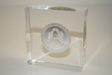 • Coin is permanently set in an acrylic Lucite paperweight.