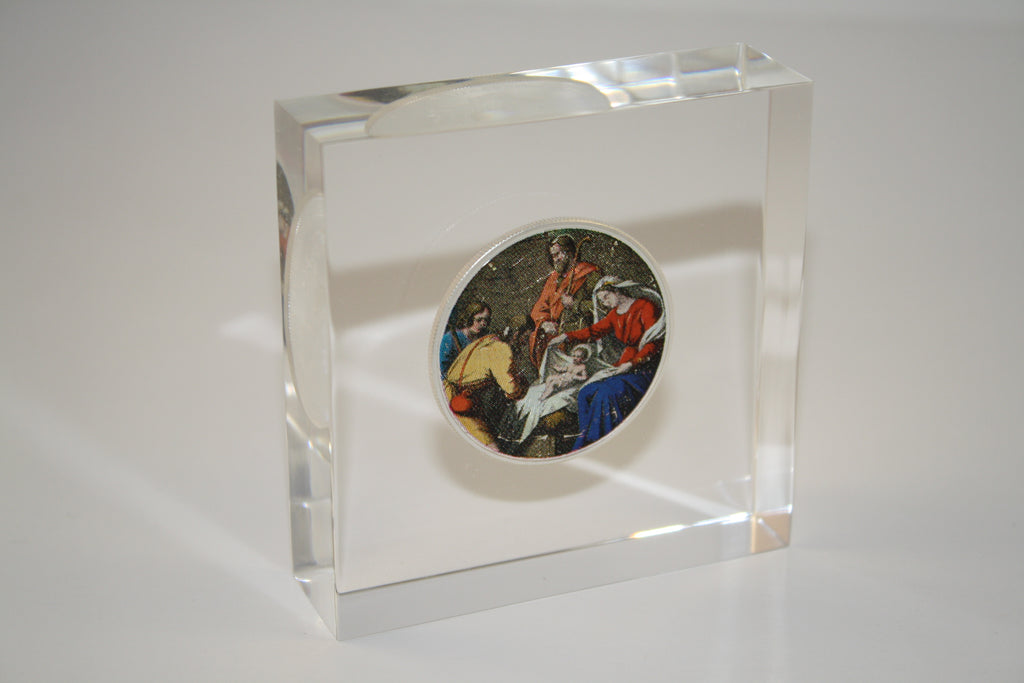 JESUS NATIVITY American Silver Eagle Colorized Coin Lucite Paperweight Square