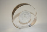 • Coin is permanently set in an acrylic Lucite paperweight.
