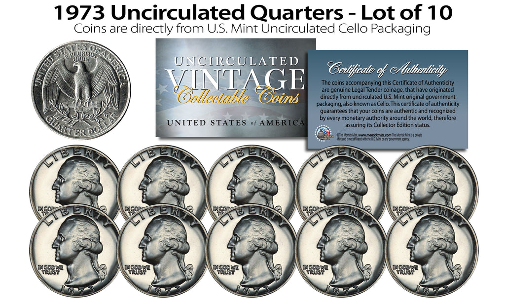 • Authentic U.S. 1973 Uncirculated Quarters.