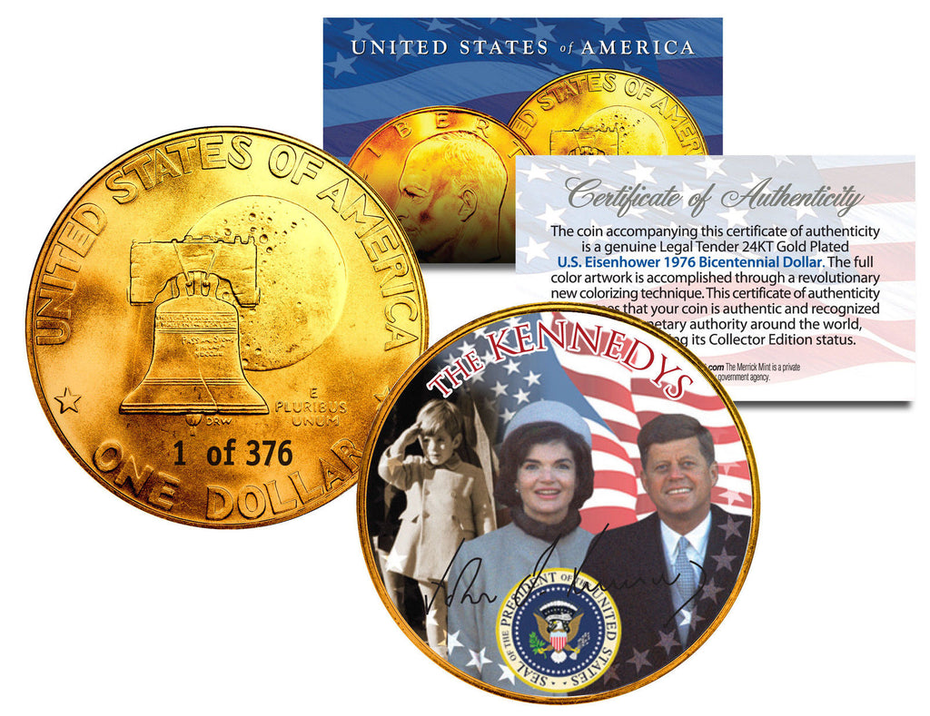 1976 KENNEDY FAMILY 24K Gold Plated IKE Dollar - Each Coin Serial Numbered of 376 - Officially Licensed
