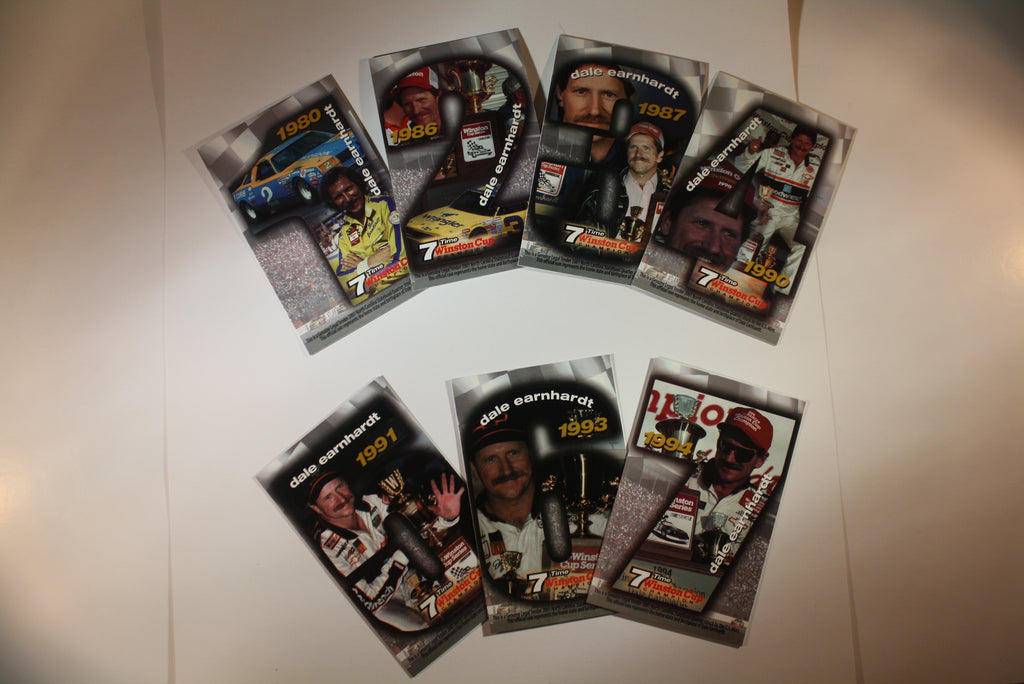 Here is your chance to own a 2001 Dale Earnhardt 7 Time Winston Cup Champion complete card set of seven (7) jumbo size cards each measuring 3.5" x 5.5”. Each card is a proof card which is unpunched for the quarter insert. (Quarters are not included) This limited edition proof card set was made by the Amazing Mint. Each proof card is in NM-Mint or better condition .