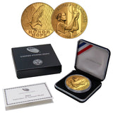 The 2011 September 11 National Medals were produced by the United States Mint in commemoration of the 10th anniversary of the September 11, 2001 terrorist attacks. The medals are struck to collector proof quality and contain one ounce of .999 fine silver. To enhance the coin, it was subsequently 24KT Gold Plated. The medal has a smooth edge and a diameter of 1.598 inches. The obverse design features Lady Liberty holding the Lamp of Remembrance with beacons of light stretching skyward behind her and inscription ALWAYS REMEMBER and 2001-2011. The reverse design features an eagle against the backdrop of cascading water with inscription HONOR HOPE. Each medal comes in a coin capsule with coin display metal box, gift box and Certificate of Authenticity.