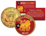 This CHINESE NEW YEAR 2016 – YEAR OF THE MONKEY COIN is lucky money and a treasured collectible. Here is your chance to own or gift a beautifully colorized famous YEAR OF THE MONKEY 24KT Gold Plated 2016 JFK Kennedy Half Dollar U.S. Coin. This high-quality genuine Legal Tender U.S. coin has been layered in Genuine 24 Karat Gold, and then enhanced with beautiful colorized images using a unique painstaking multicolor authentic process. Colorizing coins involves the unique application of special inks directly to the surface of a coin that achieves a level of detail, color saturation, and durability that is #1 in the coin industry. The result is an everlasting colorized coin collectible of ultra-high quality. Each coin comes in a premium coin capsule with a Certificate of Authenticity to guarantee that your coin is authentic and recognized by every monetary authority around the world, assuring its Collector Edition status.