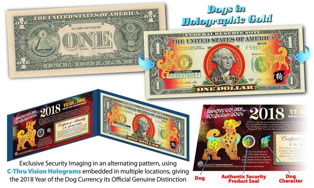 This product uses Exclusive Security Imaging in an alternating pattern, using a C-Thru Vision Hologram embedded in multiple locations, giving the 2018 Year of the Dog Currency its Official Genuine Distinction.
