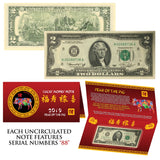 This features an uncirculated $2 Federal Reserve note with serial numbers containing the numbers “88.”