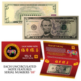 This features an uncirculated $5 Federal Reserve note with serial numbers containing the numbers “88.”