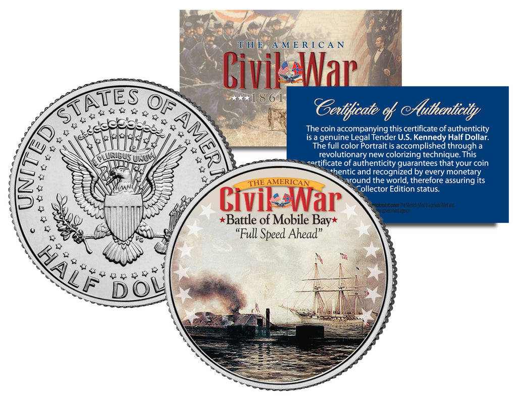 American Civil War - BATTLE OF MOBILE BAY - JFK Kennedy Half Dollar U.S. Colorized Coin