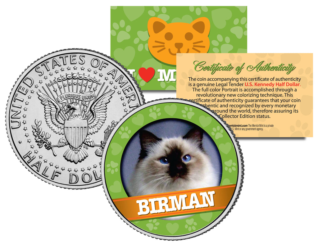 This CAT SERIES coin is a treasured collectible, combining the popularity of cats with coin collecting. Here is your chance to own a beautifully colorized JFK Kennedy Half Dollar U.S. Coin. This high-quality genuine Legal Tender U.S. coin has been colorized using a unique painstaking multicolor authentic process. Colorizing coins involves the unique application of special inks directly to the surface of a coin that achieves a level of detail, color saturation, and durability that is #1 in the coin industry. The result is an everlasting colorized coin collectible of ultra-high quality. Each coin comes in a premium coin capsule with a Certificate of Authenticity