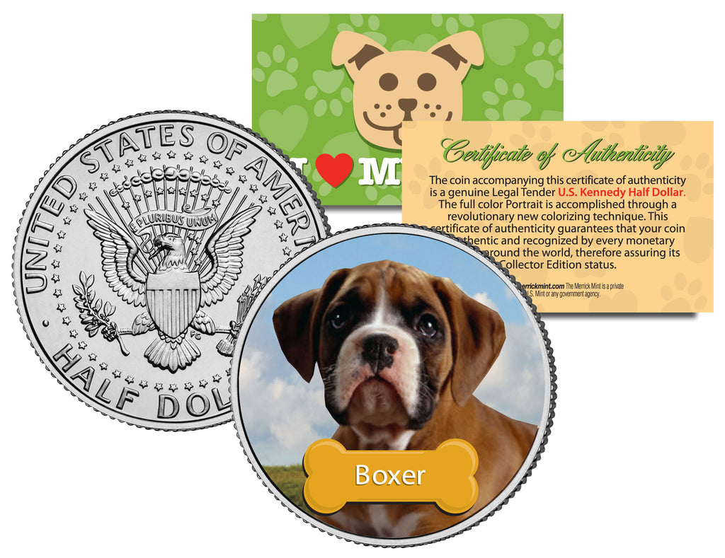• BOXER - Dog - JFK Kennedy Half Dollar U.S. Colorized Coin - Limited Edition