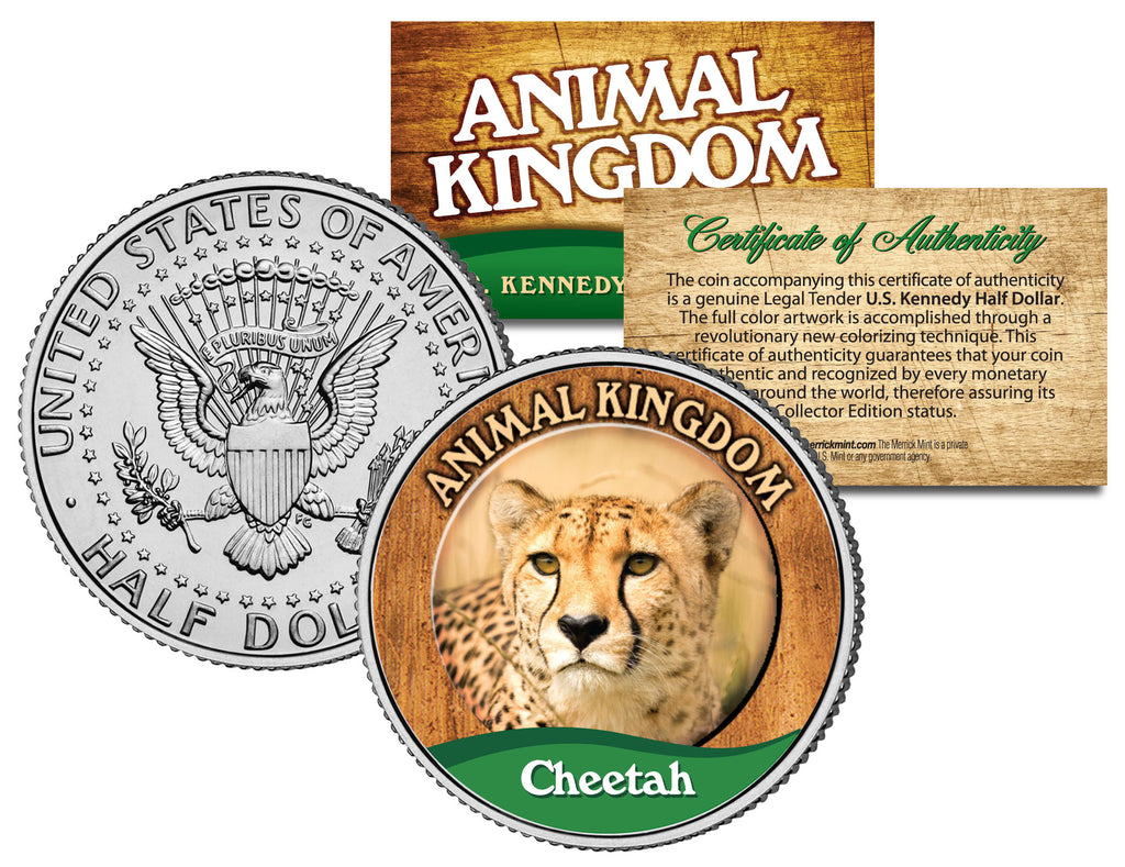 CHEETAH - Animal Kingdom Series - JFK Kennedy Half Dollar U.S. Colorized Coin