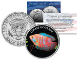 This TROPICAL FISH SERIES coin is a treasured collectible, combining the popularity of tropical fish with coin collecting. Here is your chance to own a beautifully colorized JFK Kennedy Half Dollar U.S. Coin. This high-quality genuine Legal Tender U.S. coin has been colorized using a unique painstaking multicolor authentic process. Colorizing coins involves the unique application of special inks directly to the surface of a coin that achieves a level of detail, color saturation, and durability that is #1 in the coin industry. The result is an everlasting colorized coin collectible of ultra-high quality. Each coin comes in a premium coin capsule with a Certificate of Authenticity