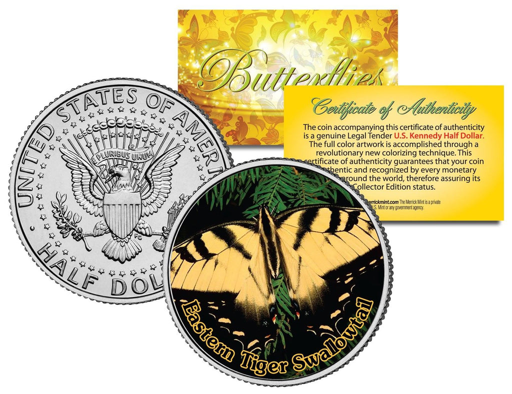 • EASTERN TIGER SWALLOWTAIL BUTTERFLY JFK Kennedy Half Dollar U.S. Colorized Coin