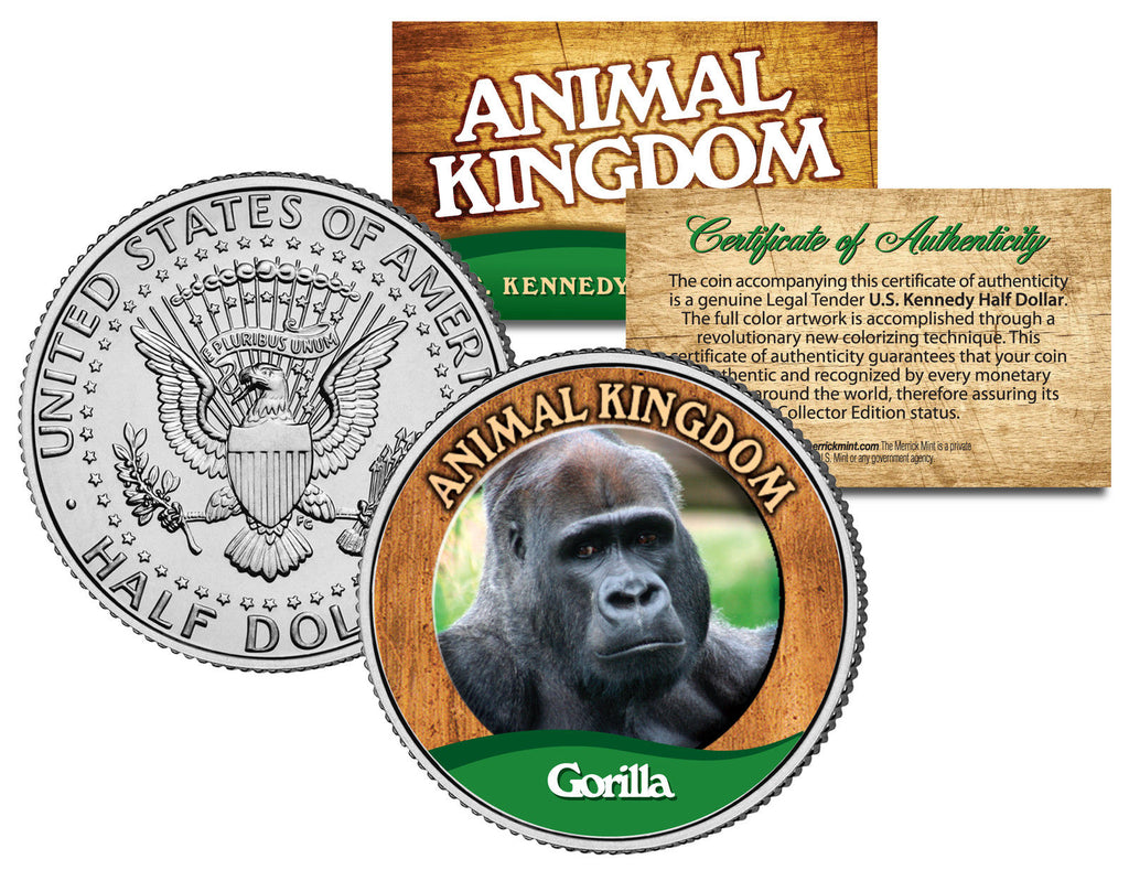 GORILLA - Animal Kingdom Series - JFK Kennedy Half Dollar U.S. Colorized Coin