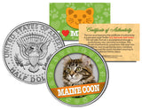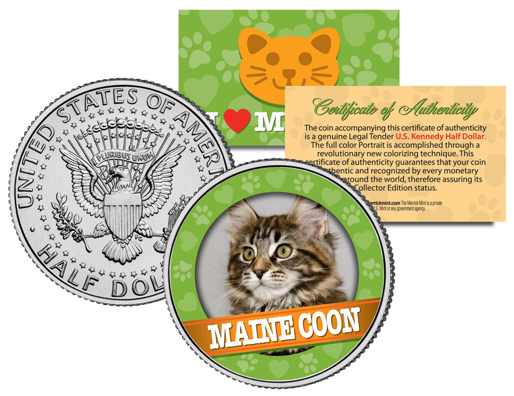 • MAINE COON Cat JFK Kennedy Half Dollar U.S. Colorized Coin