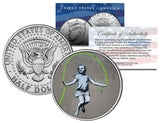 Here is your opportunity to own or to gift the BANKSY - GIRL JUMPING ROPE colorized JFK Kennedy Half Dollar U.S. Coin, which has been enhanced with a beautifully colorized image by the Merrick Mint. Each coin comes in a premium coin capsule with a full color Certificate of Authenticity to guarantee that your coin is authentic and recognized by every monetary authority around the world, assuring its Collector Edition status. This Legal Tender United States coin has been colorized with an application of special inks directly to the surface of the coin, using a unique and painstakingly multicolor coin process, which achieves a level of detail, color saturation, and durability that is #1 in the coin industry. The result is an everlasting colorized coin collectible of ultra-high quality.