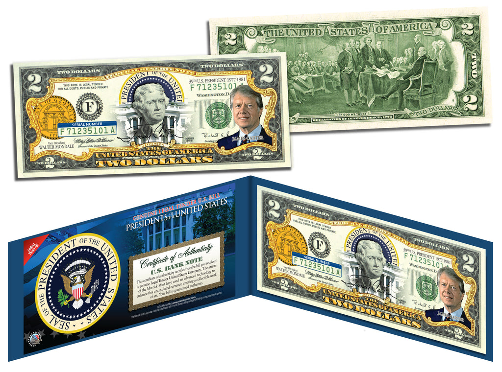 JIMMY CARTER * 39th U.S. President * Colorized Presidential $2 Bill U.S. Genuine Legal Tender