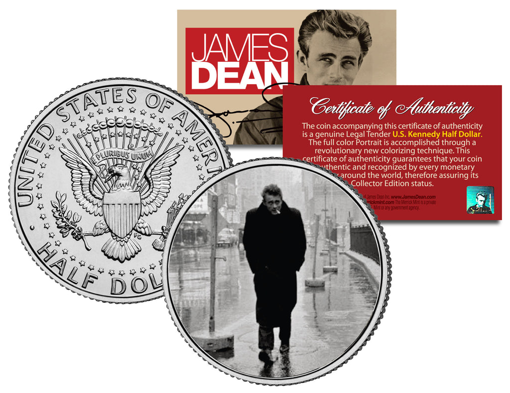 Here is the famous image of cultural icon, JAMES DEAN, known as “Boulevard of Broken Dreams” taken in New York City’s Time Square in 1955, the year he died. This Officially Licensed JAMES DEAN SERIES – BOULEVARD OF BROKEN DREAMS coin is a treasured collectible, combining the popularity of cultural icon, James Dean, with coin collecting. Here is your chance to own a beautifully colorized JFK Kennedy Half Dollar U.S. Coin. This high-quality genuine Legal Tender U.S. coin has been colorized using a unique painstaking multicolor authentic process. Colorizing coins involves the unique application of special inks directly to the surface of a coin that achieves a level of detail, color saturation, and durability that is #1 in the coin industry. The result is an everlasting colorized coin collectible of ultra-high quality. Each coin comes in a premium coin capsule with a Certificate of Authenticity.