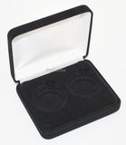 •Black felt insert holds two (2) encapsulated U.S. Half Dollars in upright or flat position