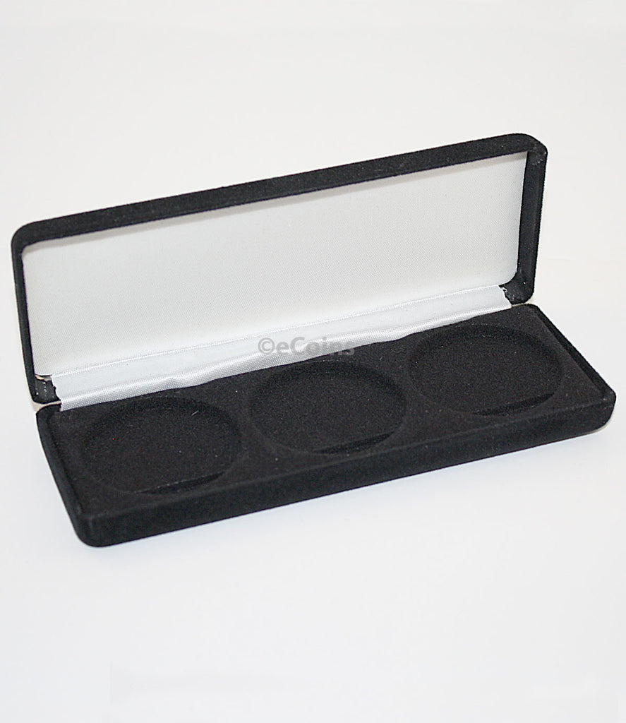 Black Felt COIN DISPLAY GIFT METAL PLUSH BOX holds 3-IKE or Silver Eagle WIDE