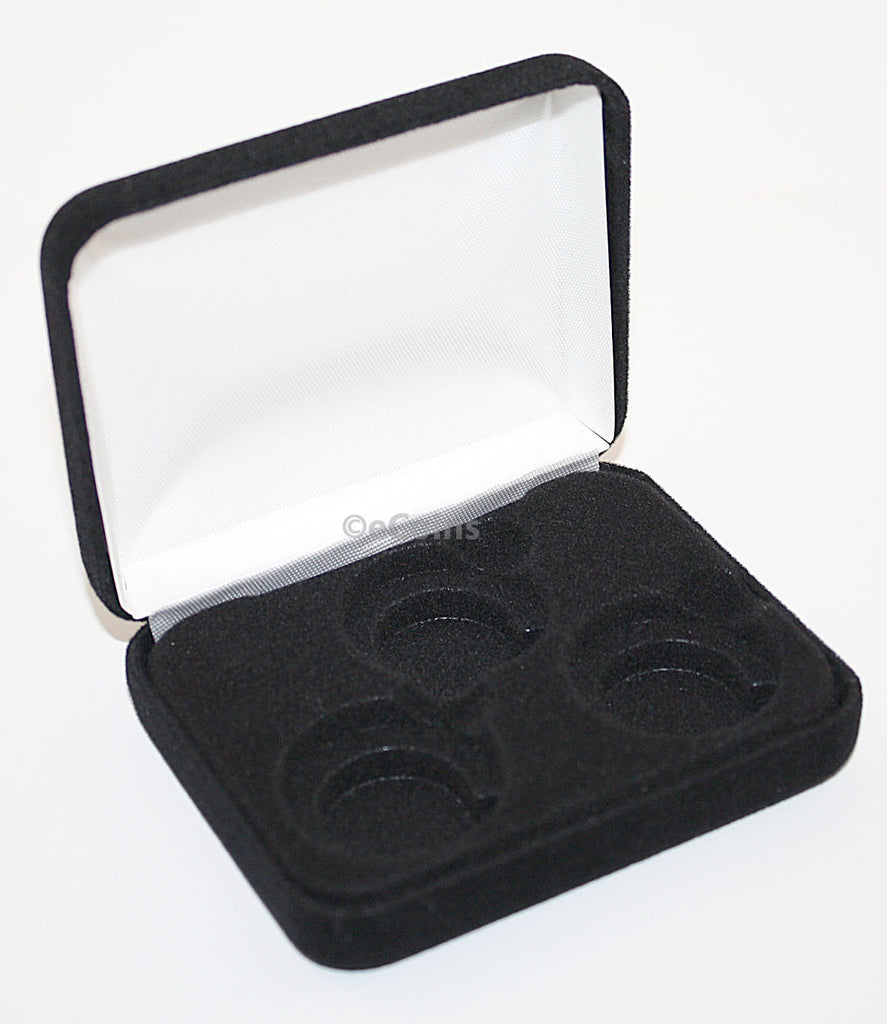 • Black Felt COIN DISPLAY GIFT METAL PLUSH BOX holds 3-Quarters or Presidential $1 or Sacagawea Dollars