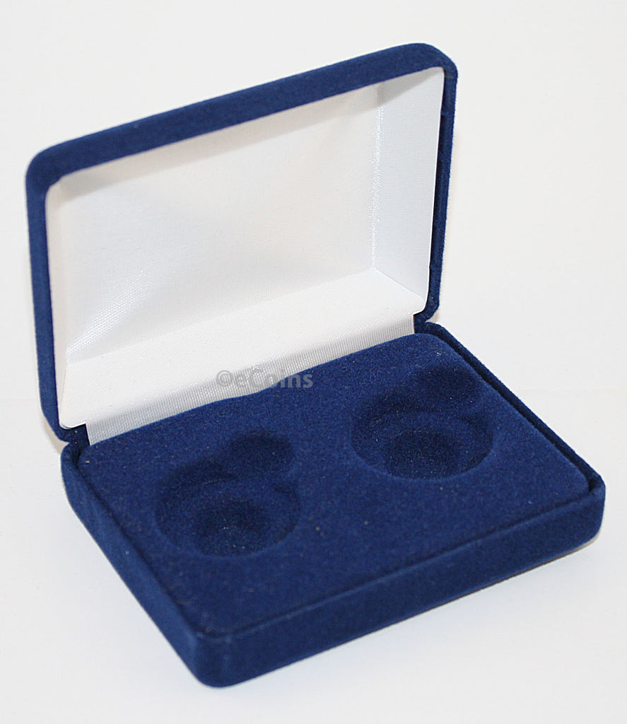 •Blue felt insert holds two (2) encapsulated Quarters/Presidential $1/Sacagawea Dollars in upright or flat position