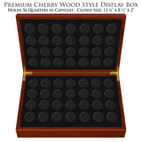 Deluxe Heirloom Cherry Wood Style Coin Presentation 56-Coin Display Box – Holds Any Coin Capsule with Outside Dimension of 1.25 Inches (24MM)