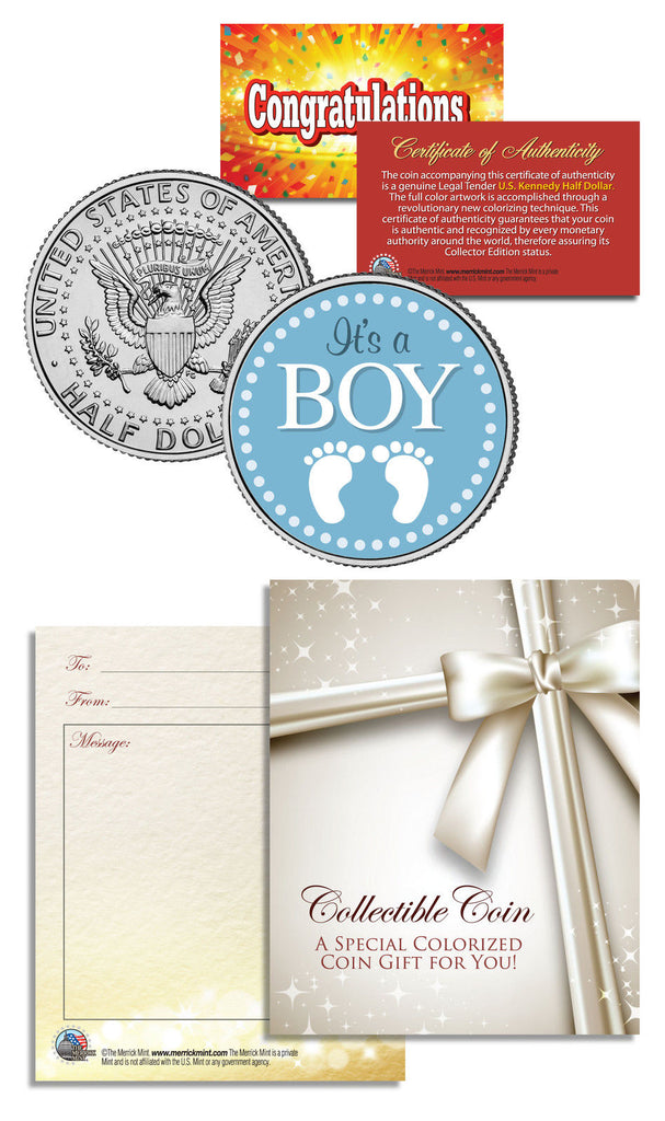 IT'S A BOY - Baby Gift - Keepsake JFK Kennedy Half Dollar US Colorized Coin