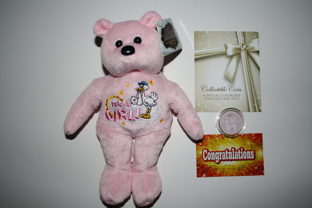 •IT'S A GIRL Coin and Plush Bear - Treasured Collectible Gifts