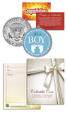 This IT'S A GIRL coin and plush bear are treasured collectible gifts. The 8” high Special Moments Personalized Greeting Card Plush Bear is an exclusive design which is available nowhere else. On the Bear’s back, there is a clear pocket to display the beautifully colorized JFK Kennedy Half Dollar U.S. Coin. This high-quality genuine Legal Tender U.S. coin has been colorized using a unique painstaking multicolor authentic process by the Merrick Mint. Colorizing coins involves the unique application of special inks directly to the surface of a coin that achieves a level of detail, color saturation, and durability that is #1 in the coin industry. The result is an everlasting colorized coin collectible of ultra-high quality. Each coin comes in a premium coin capsule with a Certificate of Authenticity to guaranty that your coin is authentic and recognized by every monetary authority around the world, assuring its Collector Edition status. As a bonus, you will also receive an attractive, handy Gift Message Card for you to personalize when giving the coin as a gift.