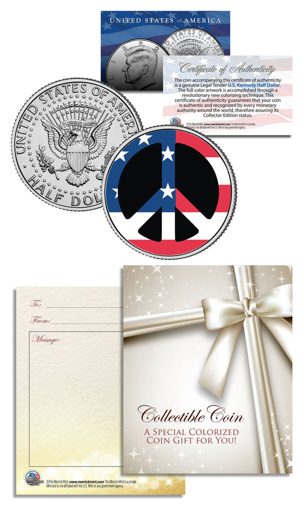 PEACE SIGN SYMBOL - Patriotic Keepsake Gift - JFK Kennedy Half Dollar US Colorized Coin