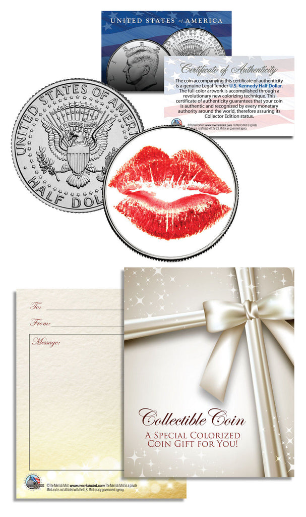 RED LIPS - KISS - RED LIPSTICK - JFK Kennedy Half Dollar US Colorized Coin