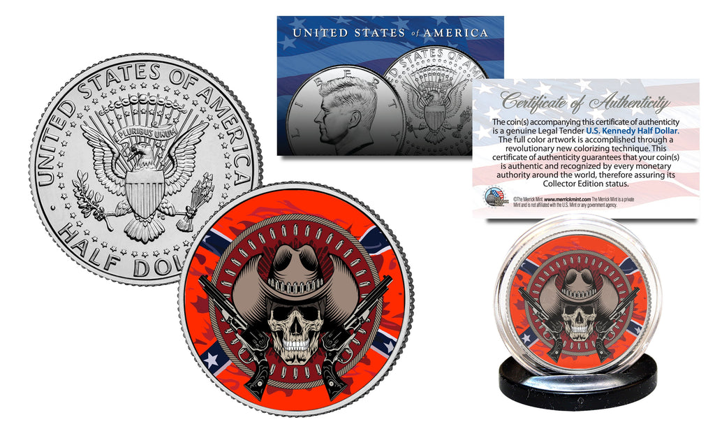 SKULL Genuine Legal Tender JFK Kennedy Half Dollar U.S. Coin - Confederate Flag