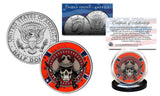 This SKULL coin is a treasured collectible, combining the popularity of skulls with coin collecting. Here is your chance to own a beautifully colorized JFK Kennedy Half Dollar U.S. Coin. This high-quality genuine Legal Tender U.S. coin has been colorized using a unique painstaking multi-color authentic process by the Merrick Mint. Each coin comes in a premium coin capsule with a Certificate of Authenticity to guaranty that your coin is authentic and recognized by every monetary authority around the world, assuring its Collector Edition status.